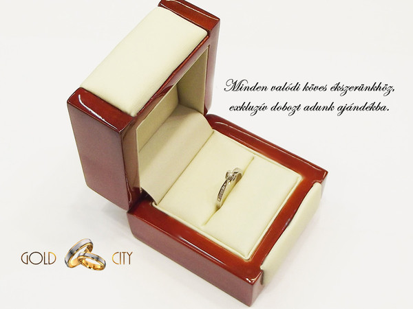 A jegygyűrűkben elhelyezkedő kövek lehetnek szintetikus cirkónia kövek, vagy szikrázóan csillogó gyémántok. Mind foglalva vannak, így biztonsággal viselhetőek a minden napok során. A jegygyűrűket díszdobozban szállítjuk, jótállással számlával, és valódi kövekről certifikát lesz kiállítva szavatolva minőségé.